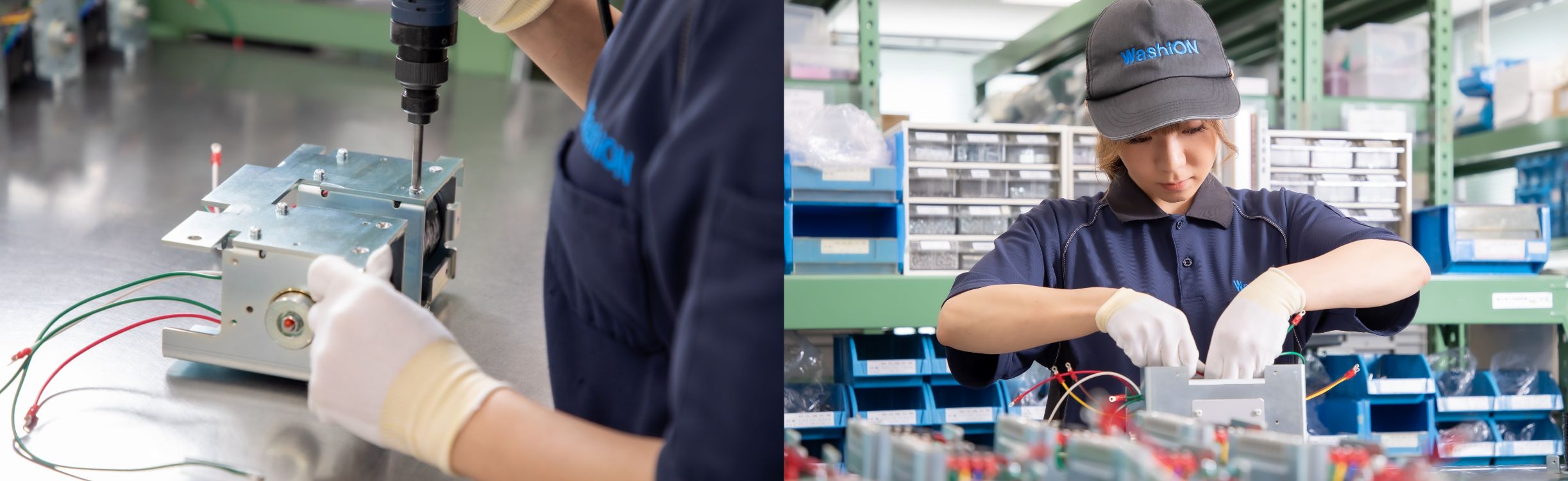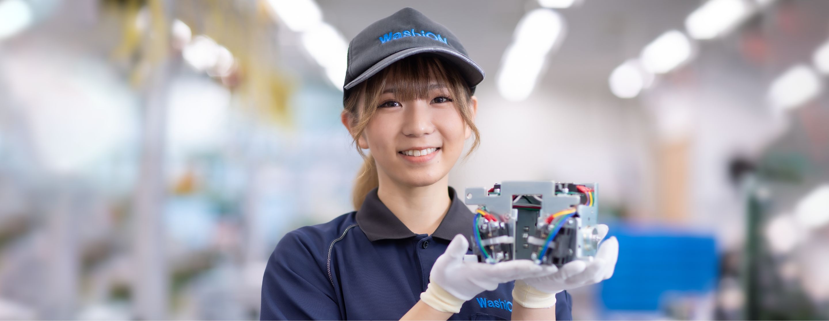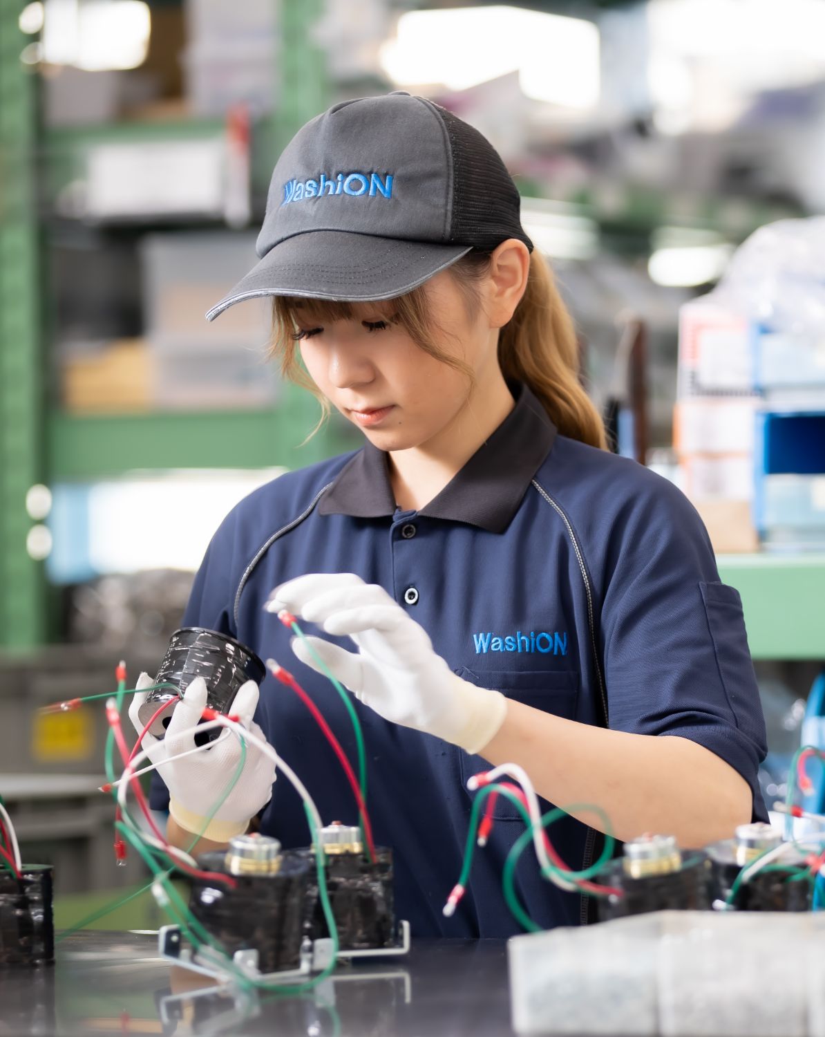 WashiONの製品は車両、太陽光や信号設備など日常生活を送る中で欠かせない部分の支えとなる機器を造っていて、自分の組立てた製品がお客様のもとへ届きさまざまな場所で社会に貢献していると思うと大変やりがいを感じます。