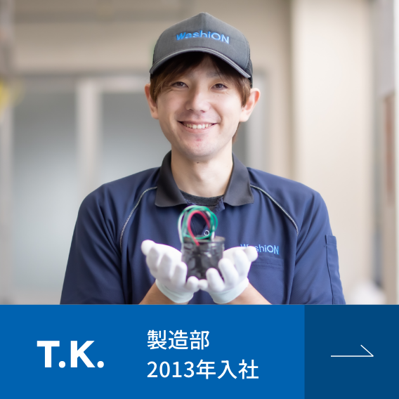 以前はプリント基板のメーカーに勤めていましたが、自分は組立作業が向いていると感じ転職活動している時にWashiONに出会いました。製品を一から手作業で組立てる作業工程に魅力を感じ入社しました。